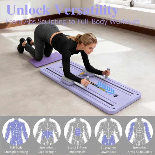 Foldable Fitness Board Pilates Board Fitness Pushup Board Househeld Fitness Equipment with Silicone Elastic Ropes 100KG Load
